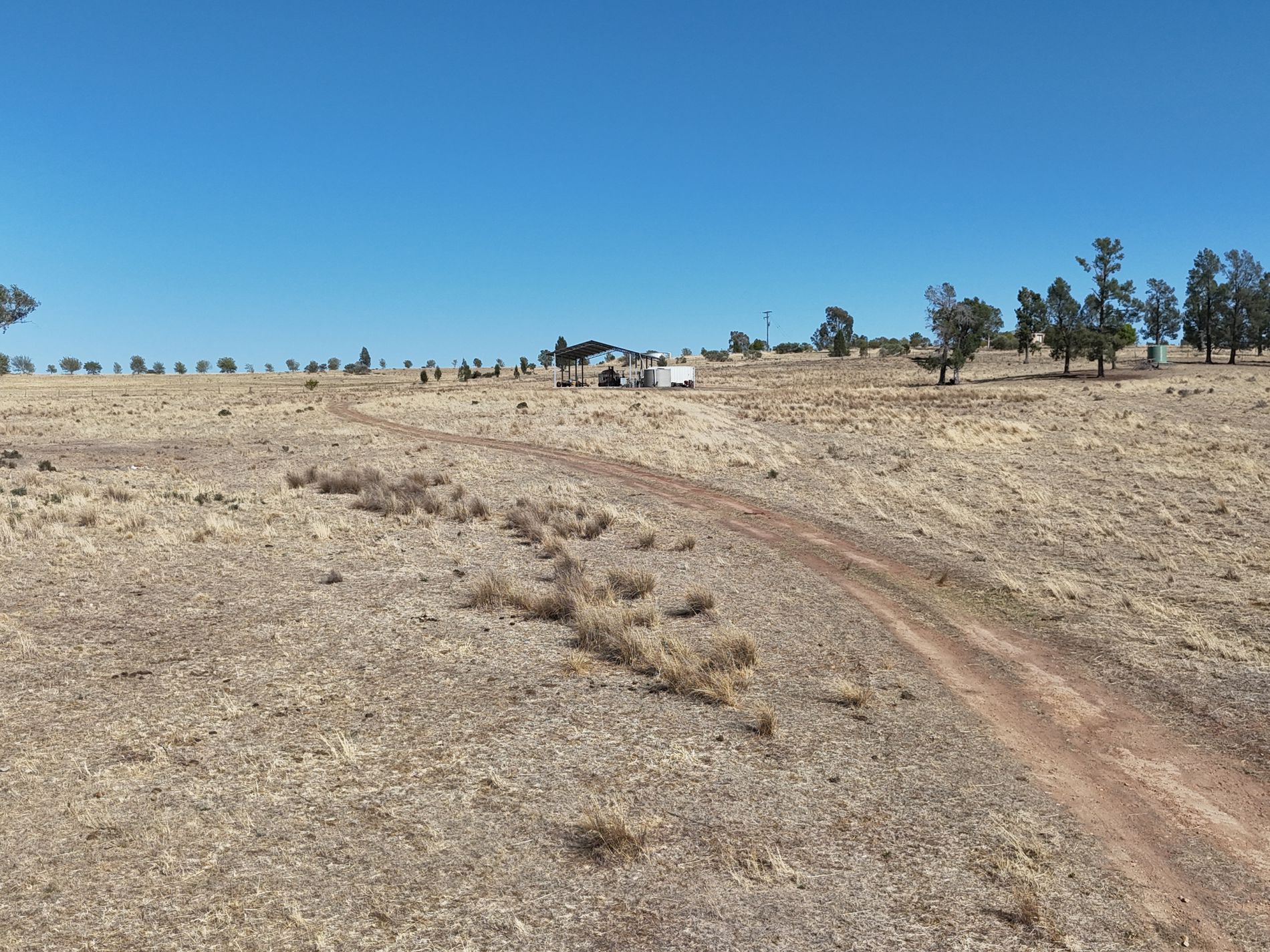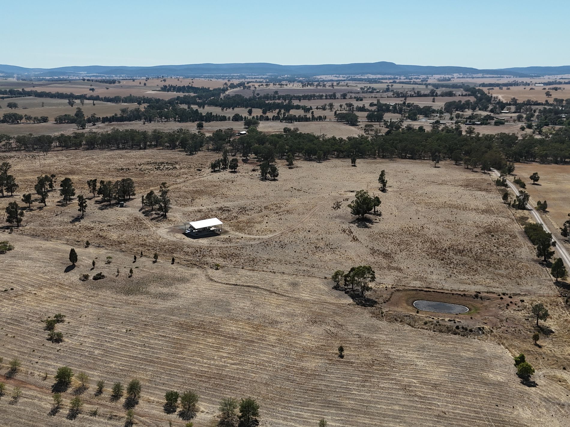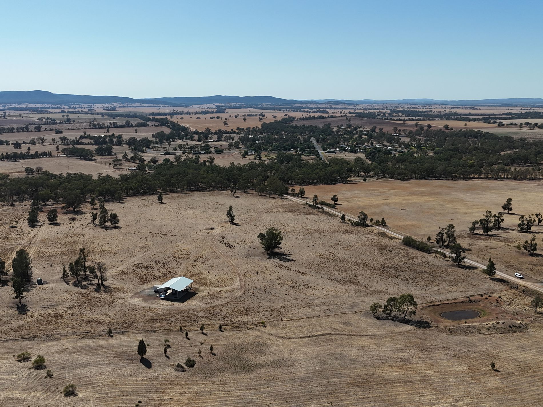 The property features a substantial 11m x 16m x 7m hay/machinery shed, an equipped bore, and rainwater storage, making it well set up for future development or agricultural use.